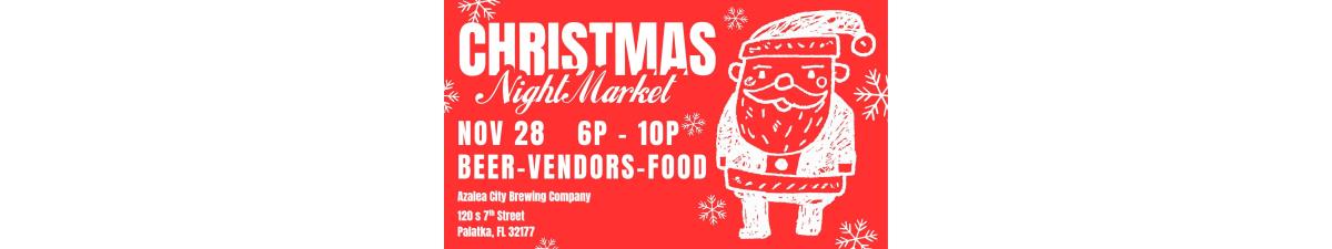 Join us on Friday, November 28 from 6-10PM for a special Night Market in the parking lot of Azalea City Brewing Company! This one-night outdoor market will kick off the brand-new Indoor Christmas Market inside the historic Coca-Cola Bottling Plant. Shop from local artisans and vendors, enjoy food and drinks, and soak in the festive atmosphere under the lights. The fun doesn't stop there--the Downtown Palatka Christmas Parade will also take place that evening just a block away, making it the perfect night to come downtown and celebrate the start of the season! (To become a vendor, please follow the link above!)