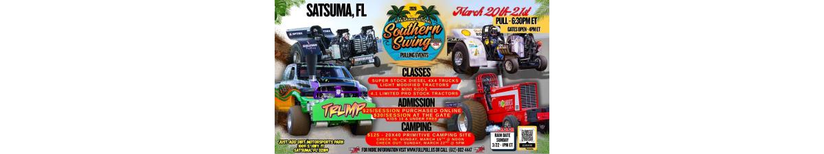 The roar continues in Satsuma as the Grand National Southern Swing rolls into the second event. Expect two action-packed nights featuring the nation's best pullers and machines built for pure power. With heart-pounding runs, family-friendly fun, and plenty of Southern hospitality. Satsuma's stop will close out the Southern swing with a bang. To purchase tickets, please follow the link above, or scan the QR code.